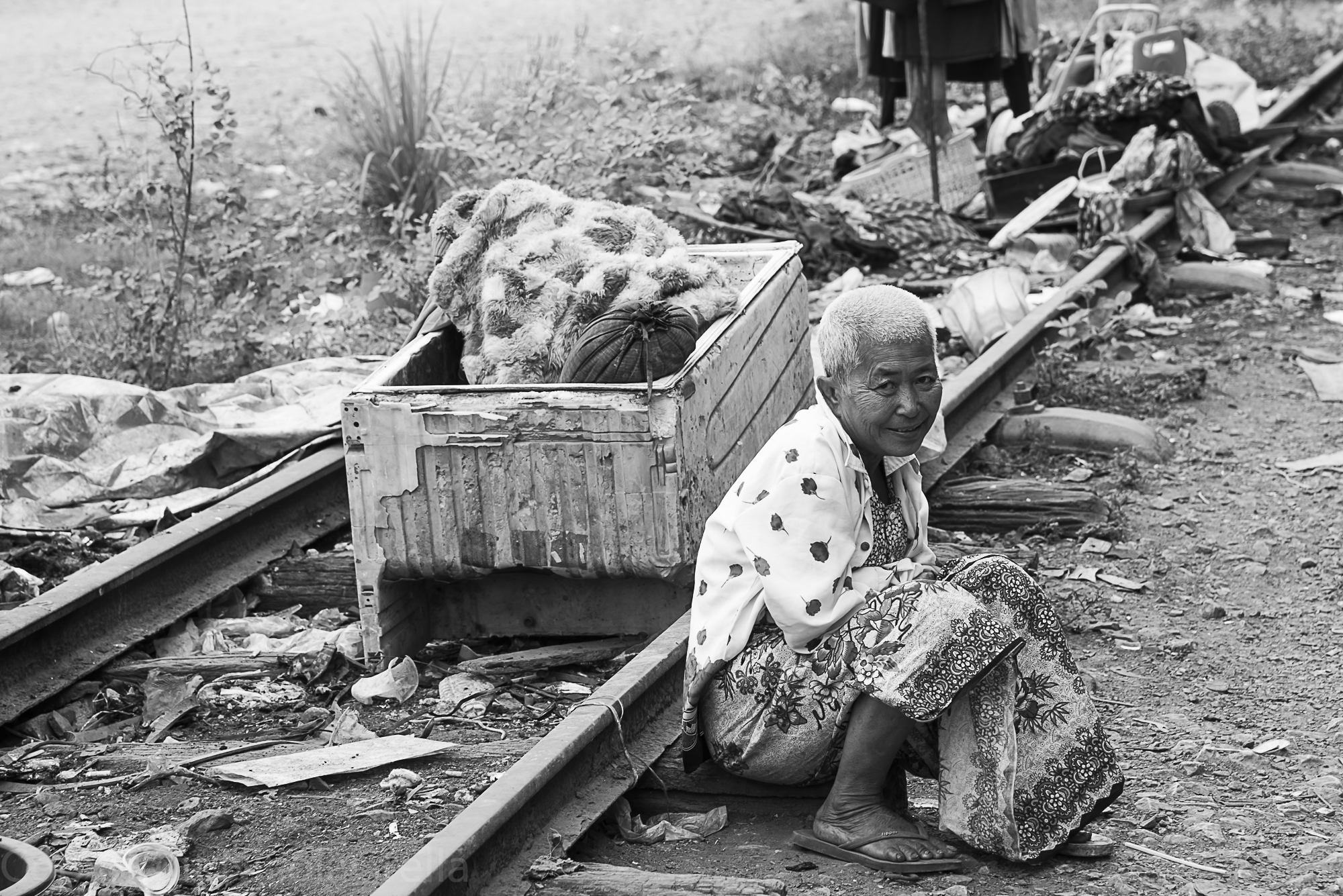 La foto è stata scattata in Cambogia. Dopo averla scattata sono andato via. Qualcuno, anche recentemente, mi ha detto che “sei qui per vedere, non per cambiare quello che vedi”. E’ una verità innegabile specie quando si ha a che fare con i bambini: dare loro qualche spicciolo è un incentivo a seguitare in una vita di mendicità. Non è una verità assoluta tuttavia. Sono tornato indietro. Lo stipendio medio mensile, in Cambogia, si aggira sugli 80-100 dollari e il PIL pro-capite è in costante aumento grazie al basso costo della manodopera che attrae molte industrie, soprattutto nel settore tessile e dell’abbigliamento. Tuttavia il 35% della popolazione vive con meno di 1 dollaro al giorno. In un articolo su El Pais, Martín Caparrós scrive: “Qualche anno fa sono andato a scrivere del Movimento dei sem terra in un angolo dell’Amazzonia. Una donna di nome Gorette mi ha prestato la sua capanna, e io ho creduto che la miglior descrizione della povertà fosse raccontare quello che c’era all’interno”. Nella capanna di Gorette ci sono un machete, quattro piatti di latta, tre bicchieri, cinque cucchiai, due pentole di ottone, due amache, un recipiente pieno d’acqua, tre lattine di latte in polvere zuccherato, sale e latte in polvere, una lattina di olio piena, due lattine di olio vuote, tre asciugamani, una scatola di cartone con qualche vestito, due calendari di qualche negozio con dei paesaggi, un frammento di specchio, due spazzolini, un mestolo, mezzo sacchetto di riso, una radio che non prende quasi niente, due giornali del movimento, il quaderno di scuola, un recipiente di plastica per portare l’acqua dal pozzo, un catino di plastica per lavare i piatti e una bambola di pezza con un vestito rosso e una strana cuffietta. Questi sono i suoi averi nel mondo, insieme a tre tronchi per sedersi, un paio di infradito, una lampada a cherosene e niente più. Sono le stesse cose che ho visto in Cambogia intorno a questa questa donna. Forse manca qualcosa, quel qualcosa che rende una capanna casa, e forse c’è qualcosa in più, quel qualcosa che appartiene al ricovero in disuso dei treni. In Marocco mi hanno raccontato come nel mondo occidentale si faccia ogni giorno uso di più di 150 oggetti, e di come gli oggetto d’uso quotidiano scendano a 90 nei Paesi del Maghreb e a 5 in quelli dell’Africa subsahariana. Chi me lo raccontava non era mosso da finalità ecologiste, anzi. Era il racconto brevissimo e del tutto legittimo dell’ambizione a migliori condizioni di vita. Tornato a casa l’ho tradotto in termini di impronta ecologica. “L’impronta ecologica è un indicatore complesso utilizzato per valutare il consumo umano di risorse naturali rispetto alla capacità della Terra di rigenerarle. Il concetto di impronta ecologica è stato introdotto da Mathis Wackernagel e William Rees nel loro libro Our Ecological Footprint: Reducing Human Impact on the Earth, pubblicato nel 1996. A partire dal 1999 il WWF aggiorna periodicamente il calcolo dell’impronta ecologica nel suo Living Planet Report. Nel 2003 Mathis Wackernagel e altri hanno fondato il Global Footprint Network, che si propone di migliorare la misura dell’impronta ecologica e di conferirle un’importanza analoga a quella del prodotto interno lordo.” informa Wikipedia.